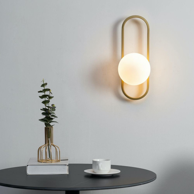 این چراغ دیواری با طراحی مینیمال و فرم کروی شیشهای، نور ملایم و دلنشینی ایجاد میکند که فضا را گرم، آرام و شیک نشان میدهد.