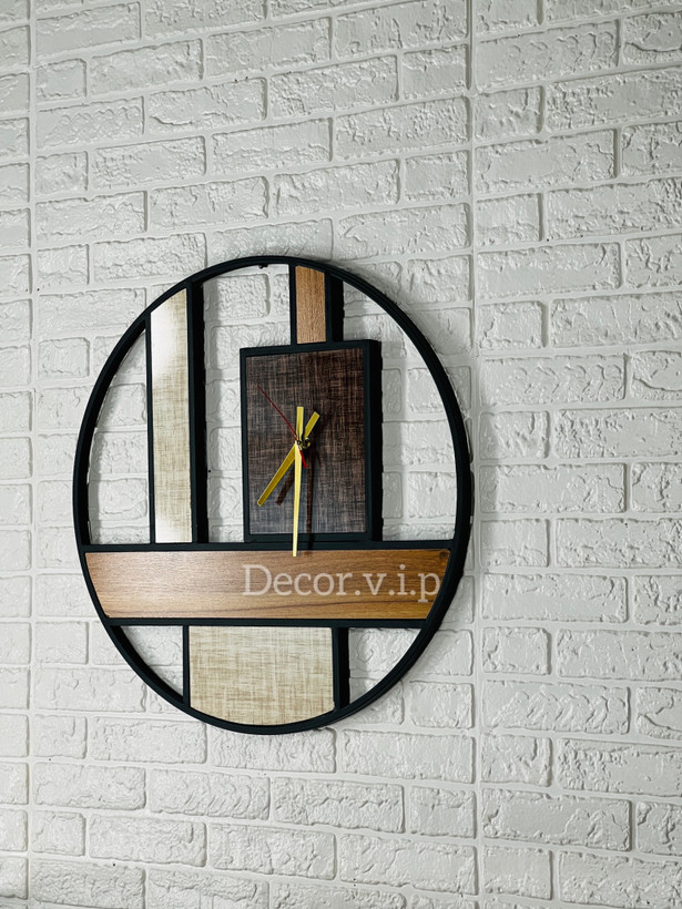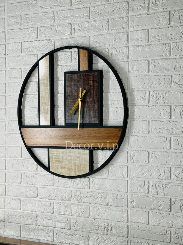ساعت دیواری ترکیب چوب و فلز قطر ۶۰ سانت