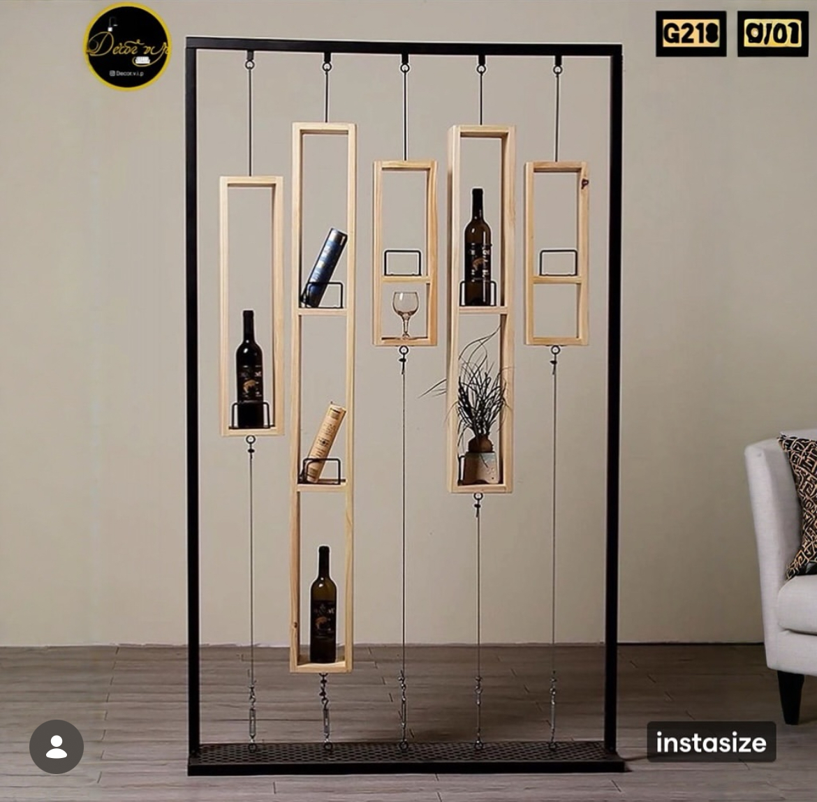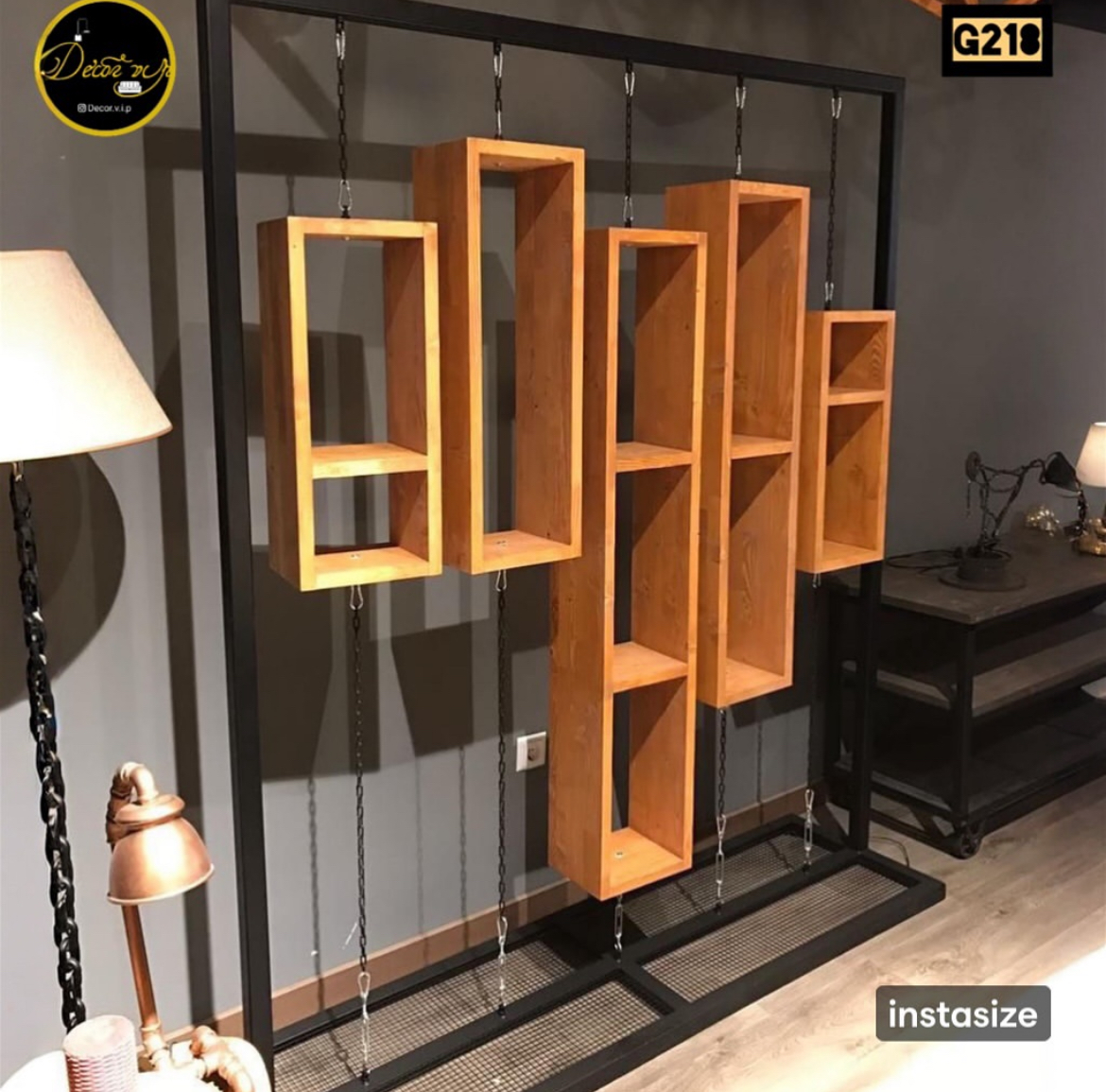 طراحی معلق و متفاوت با جلوه بصری بسیار جذاب مناسب برای جداکردن فضا بدون بستن دید ترکیب فریم فلزی مقاوم و باکسهای چوبی باکیفیت قابل استفاده برای قرار دادن لوازم دکوری، گلدان، کتاب و … مناسب برای منازل، دفاتر و فضاهای مدرن